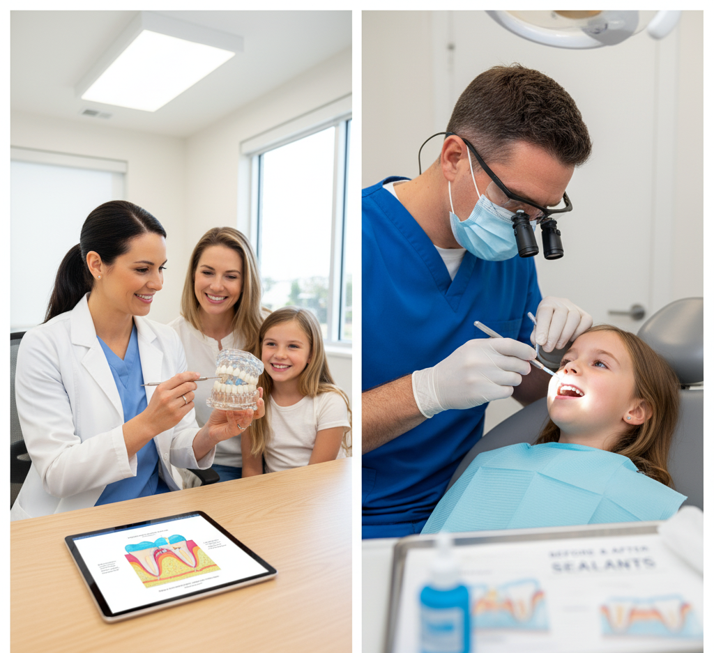 When we apply a dental sealant, we paint a plastic coating on top of your teeth. This makes your teeth smooth getting rid of the rough edges, depressions, and grooves that are commonly found on teeth. It is essentially a protective coating against tooth decay and cavities.