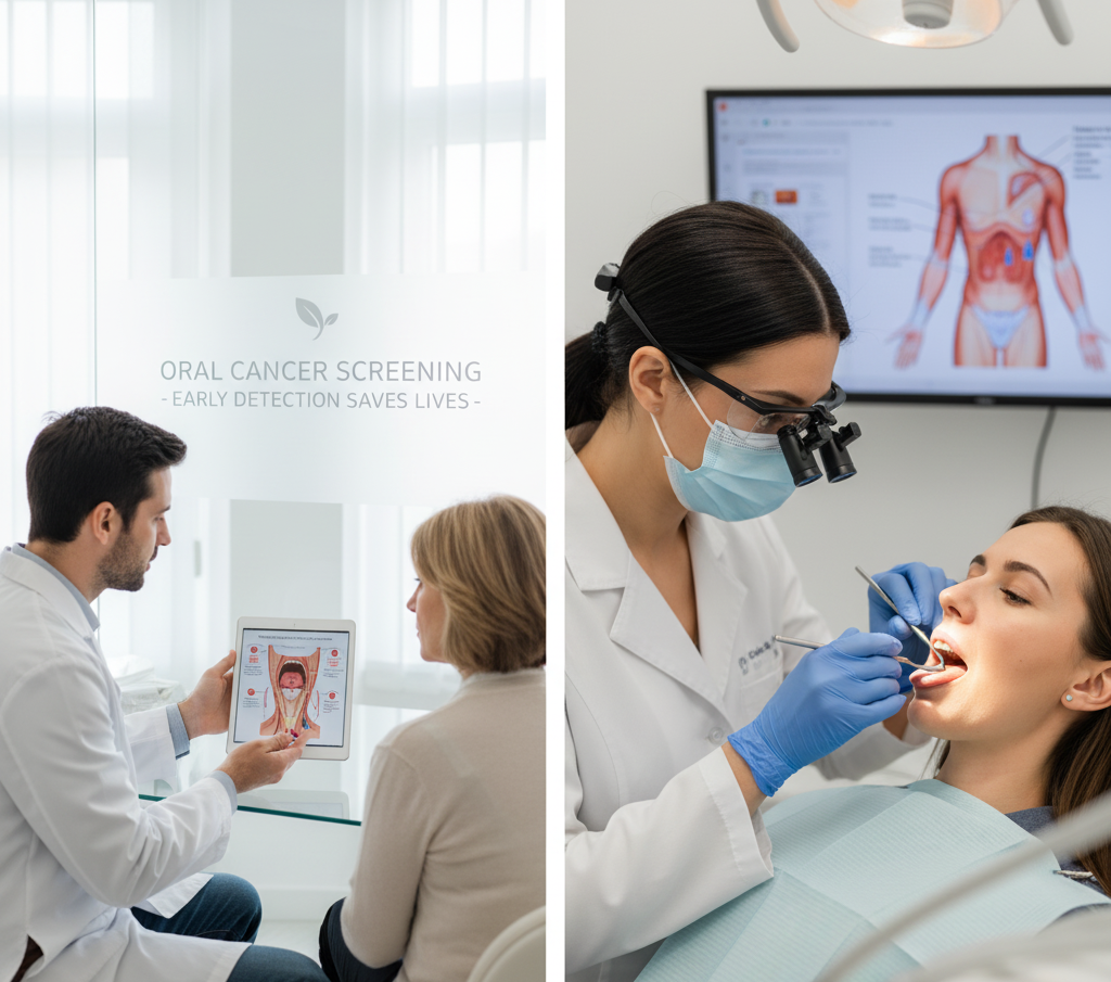 Oral cancer will typically show up as white or red patches or lesions inside of your mouth. You may even notice the lesions on your tongue or on the floor of your mouth. Many people experience a hard time swallowing, bleeding in the mouth, or even swelling in your face or neck.